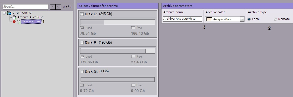 When selecting the disk on which to place the archive volume, take its size into account. If the archive is completely filled, the oldest data will be overwritten with new data.