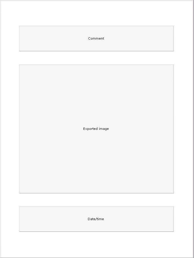 Exported PDFs consist of three sections: comment entered during export; date and time of the snapshot; and snapshot image.