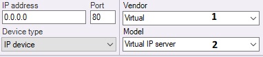 - In the form for manually adding an IP device, select Virtual in the Vendor drop-down list (1).