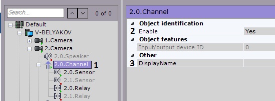 If the camera has a built-in or pluggable digital input or output, the Channel object is displayed as a child of Camera in the object tree.