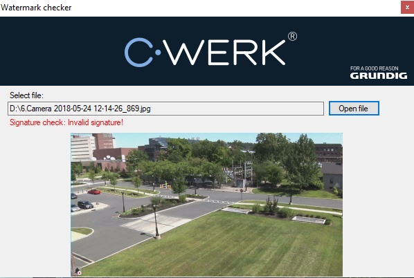 This utility verifies the digital signature that is added during export of video and snapshots from C-Werk.
