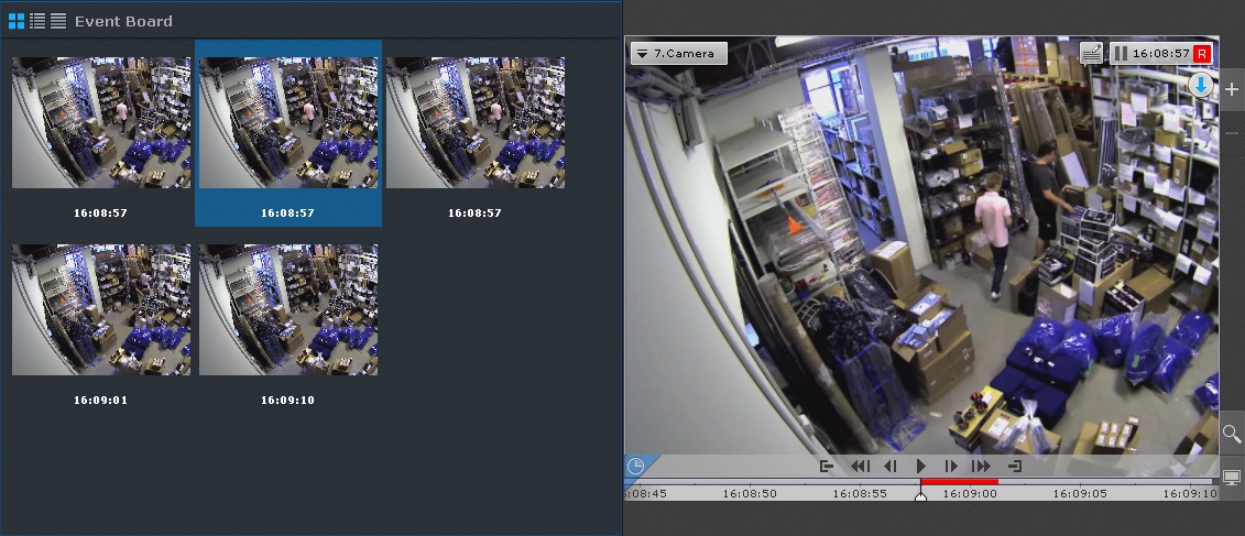 If an Events Board is linked with a camera, clicking an event will switch the camera to Archive mode at the point in time corresponding to the event.