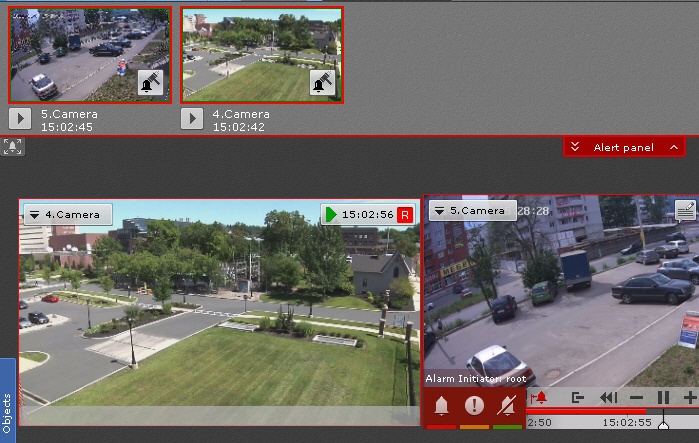 The Alarms panel is at the top of the screen and you can see it only if there are active alarms. To open Alarms Panel, click the button.