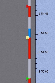 When you classify an alarm (critical, non-critical, false, or missed), a flag is added to the alarm recoding on the timeline. A flag is added to the point on the timeline when the alarm began.