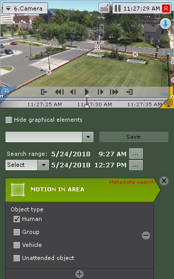 In the Archive Search mode (the tab )), you can set criteria (filters) to search video footage. You can choose from the following search filters: