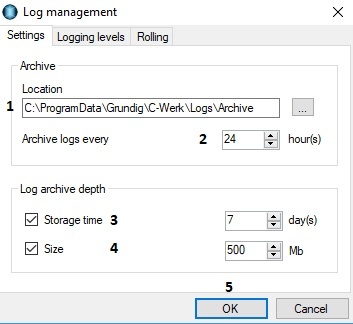 3.1. En el campo Tiempo de almacenamiento (3) — el tiempo máximo de almacenamiento del historial en el archivo, en días, al término del cual el historial será eliminado.
