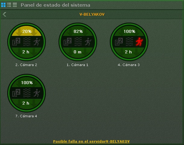 - Estado de los detectores de vídeo (desplazamiento, degradación de calidad, movimiento).