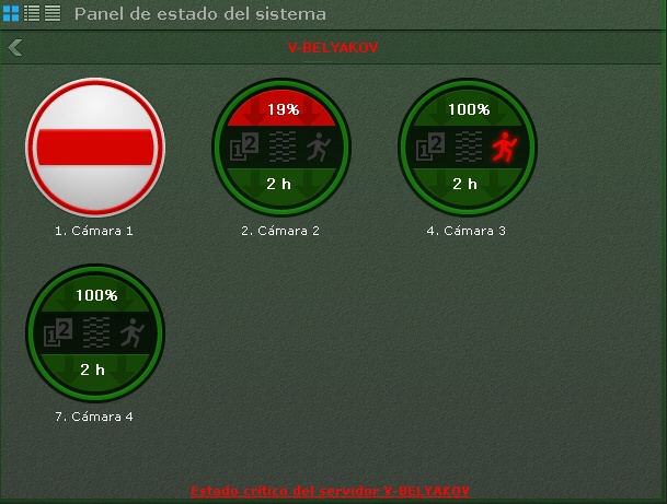 La información del estado de las videocámaras se puede visualizar de tres maneras que se intercambian con ayuda de los botones de la esquina superior izquierda del panel: