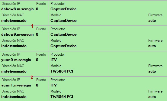En el paquete de software C-Werk a cada canal de la tarjeta WS-216 le corresponden 2 dispositivos: fabricante Grundig, modelo TW5864 PCI (controlador Yuan, 2) y fabricante  CaptureDevice, modelo CaptureDevice (controlador DShow , 1).