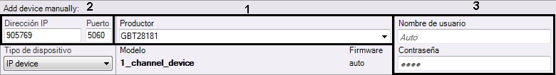 3. En el campo IP introduzca el parámetro Device ID, asignado al configurar el dispositivo IP (2).