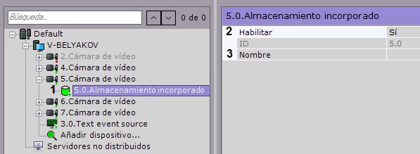 Si la videocámara tiene un almacén de datos integrado, en el sistema se creará automáticamente el correspondiente objeto.