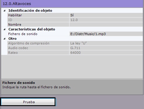 El fichero de advertencia sonora debe guardarse en el ordenador correspondiente al objeto Servidor, sobre cuya base se ha registrado el objeto Altavoz.