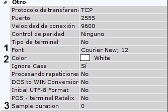 En el campo Duración de la presentación asigne en segundos el tiempo de visualización del grupo acumulado de líneas en la pantalla (3). Si se establece el valor 0, la información se mostrará en la pantalla de forma permanente. Los eventos más antiguos serán reemplazados por otros nuevos a medida que sean recibidos.
