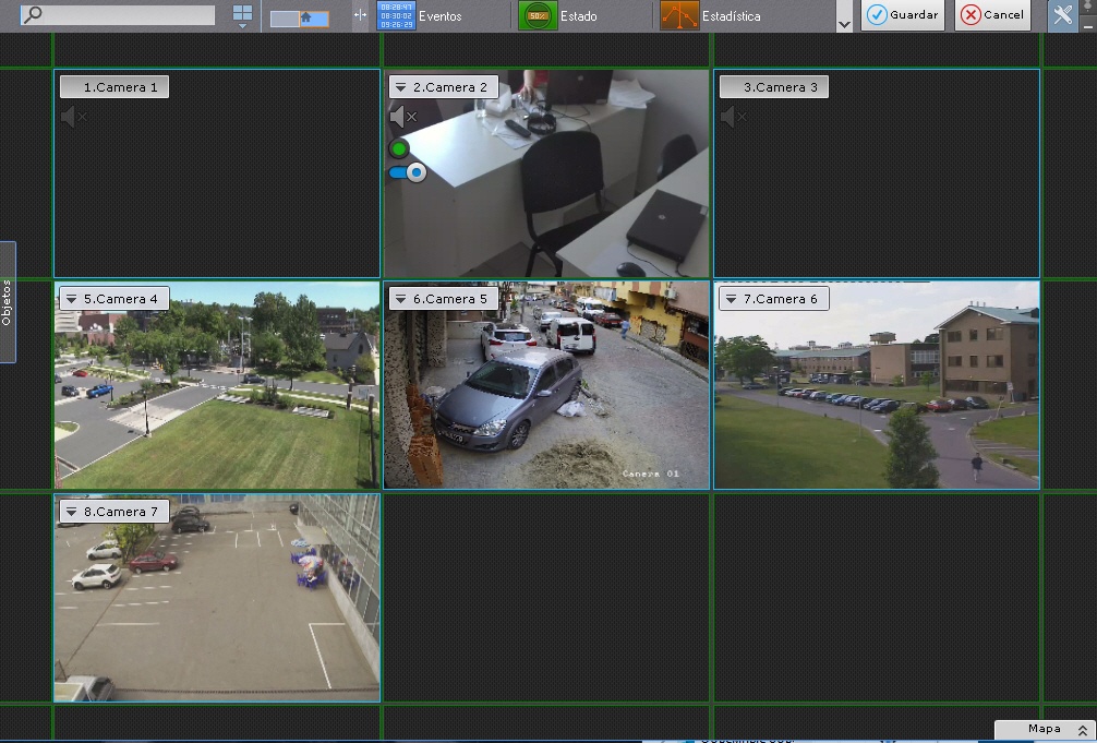 En el modo de edición de pantalla, el espacio es dividido por una red equidistante en celdas de las ventanas de videovigilancia (1).