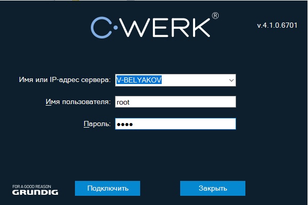 В результате произойдет запуск программного комплекса C-Werk и появится окно авторизации.