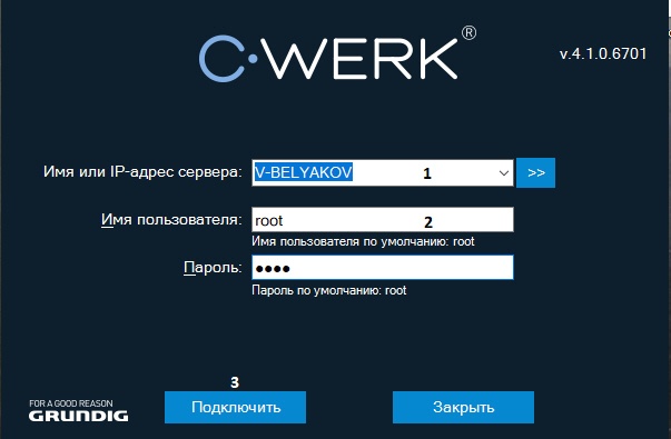 В том случае, если Сервер, к которому производится подключение, не принадлежит ни одному C-Werk-домену, после нажатия в окне авторизации кнопки Подключить будет выведено сообщение.