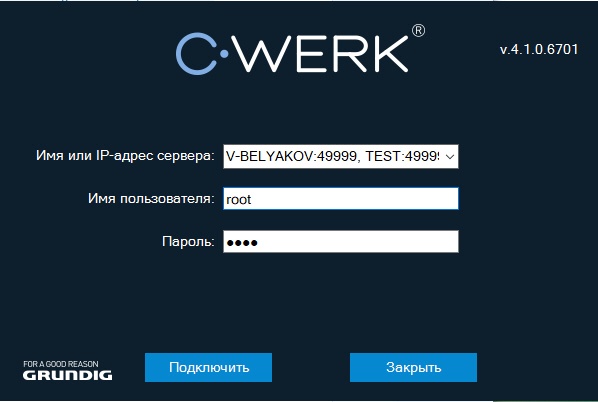 Также в окне авторизации Клиента подключение к нескольким C-Werk-доменам можно осуществить вручную. Для этого необходимо указать несколько Серверов через запятую: <Имя или IP-адрес Сервера1>:<Порт подключения>, <Имя или IP-адрес Сервера2>:<Порт подключения>.  Сервер, указанный первым, будет являться основным (см. Настройка Cross-System Клиента и автоматической авторизации)