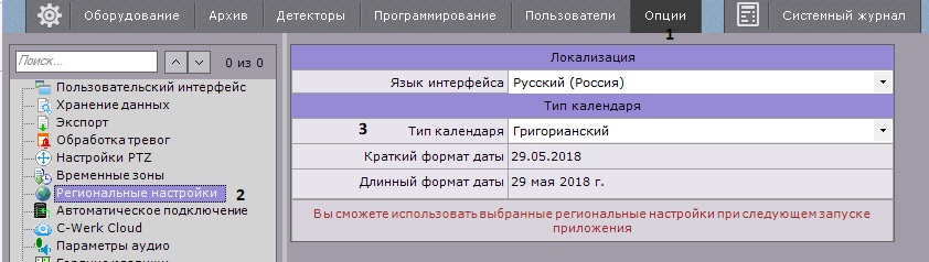 - Выбрать закладку Настройки -> Опции -> Региональные настройки (1-2).