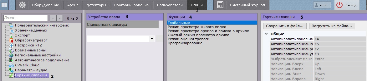 - Выбрать режим, для которого необходимо настроить горячие клавиши (4, см. Основные принципы работы горячих клавиш в ПК C-Werk).