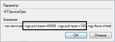 - В значении данного параметра найти и изменить значения --ngp-port-base (начало диапазона портов) и --ngp-port-span (количество портов).