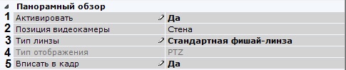 Если используется fish-eye видеокамера или видеокамера с паноморфным объективом, необходимо произвести следующие настройки в группе Панорамный обзор объекта Видеокамера: