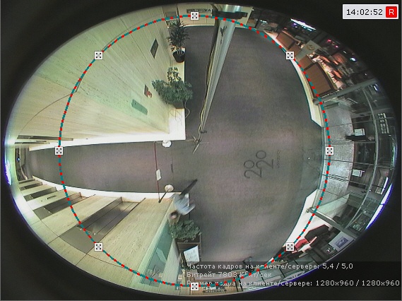 - Настроить область (круг) видеоизображения. Для перемещения круга необходимо нажать левой кнопкой мыши на любую точку внутри круга и переместить указатель мыши. Для изменения диаметра круга необходимо нажать на узловую точку и переместить указатель мыши.
