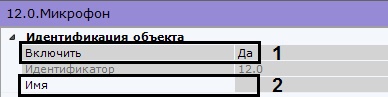 - Включить микрофон, выбрав Да в поле Включить (1).