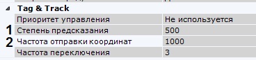 - Частота отправки координат поворотной видеокамере в миллисекундах (2). Значение должно быть в диапазоне от 100 до 3000.