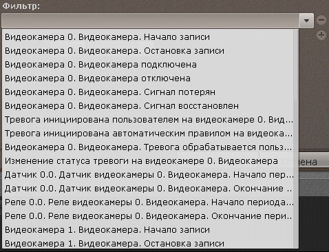 Для добавления событий одного типа от разных устройств необходимо ввести текст данного события в поле Фильтр. После этого в списке будут доступны события только заданного типа. Для возврата к полному списку событий необходимо выбрать любое событие и очистить строку фильтра.