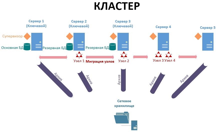 - Супервизор - служба, осуществляющая контроль над состоянием узлов и их перемещением.
