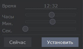 - Установить время при помощи ползунков Часы, Минуты и Секунды или ввести его с помощью клавиатуры в поле Время.