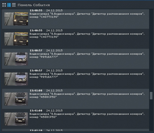 Каждый распознанный номер ТС сохраняется в системный журнал (см. Системный журнал).