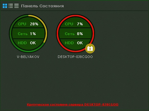 Если наблюдается более одного Сервера, то при переходе на раскладку на панели состояния по умолчанию отображается состояние Серверов.