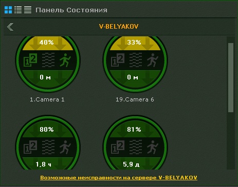 Для перехода к просмотру состояния видеокамер следует кликнуть по диаграмме необходимого Сервера.