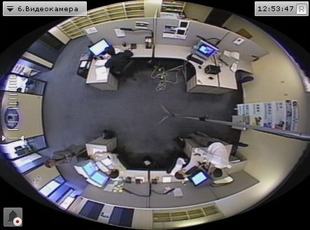 - Смена угла зрения fish-eye видеокамеры при движении нажатой левой кнопки мыши по окну видеонаблюдения.