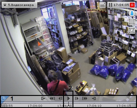 С помощью дополнительной панели навигации можно выбрать в архиве запись для воспроизведения в окне видеонаблюдения. Для этого необходимо выполнить одно из двух действий: