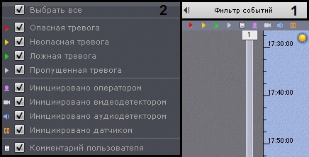 Компонент Фильтр событий предназначен для выбора типа событий, которые требуется отображать на панели навигации по архиву.