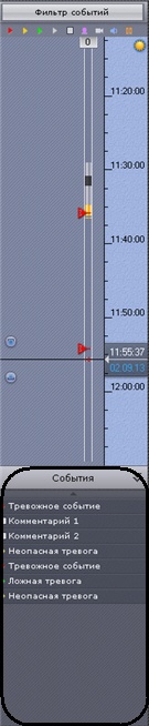 Отображение тех или иных событий в списке обусловлено настройками фильтра (см. Фильтр событий)