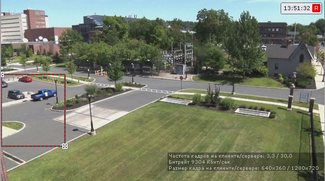 2. В окне предварительно просмотра задать одну или несколько прямоугольных зон детектирования. Возможность задание до 4 областей. Для добавления новой области необходимо кликнуть левой кнопкой мыши в 2 произвольных точки кадра.