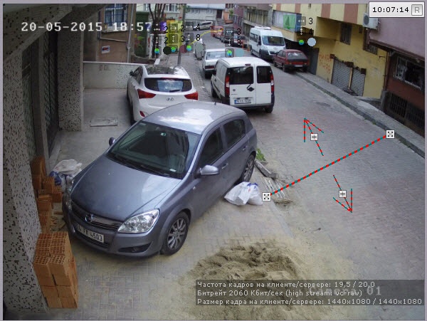 Для настройки встроенного детектора пересечения линии детектора необходимо в окне предварительного просмотра задать и настроить одну или несколько виртуальных линий. Допускается до 4 линий.