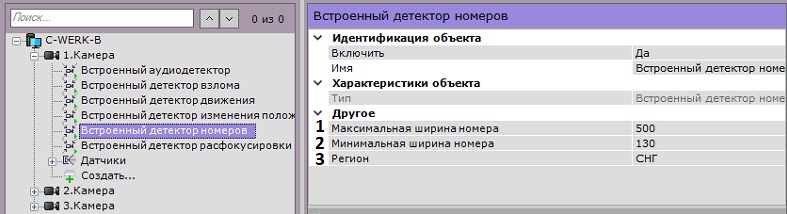 Для настройки встроенного детектора распознавания номеров необходимо: