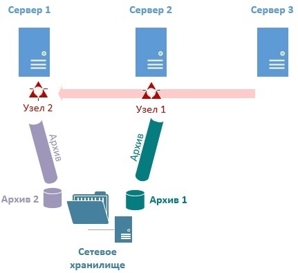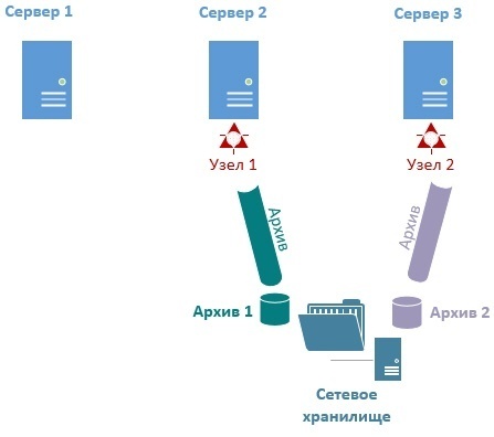 Для каждого узла необходимо создавать отдельный архив в сетевом хранилище (см. Создание сетевого архива).