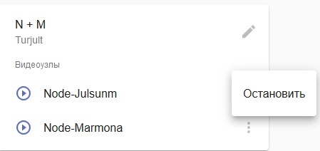 Для ручной остановки или запуска узла необходимо нажать кнопку  и выбрать требуемую операцию.