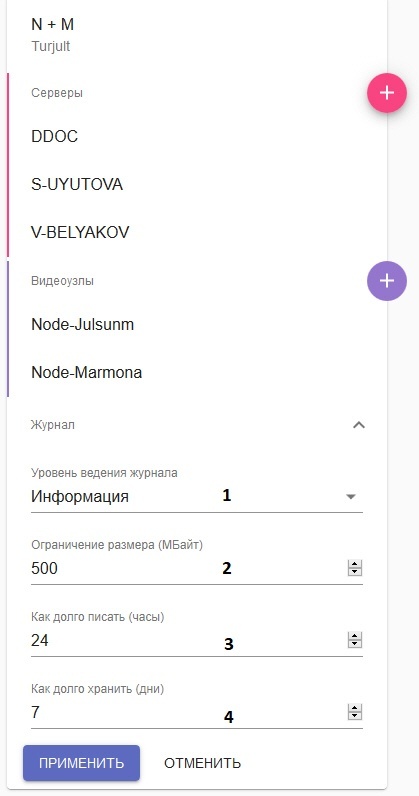 2. Задать параметры архива логов (2-4, см. Настройка архива системных логов).