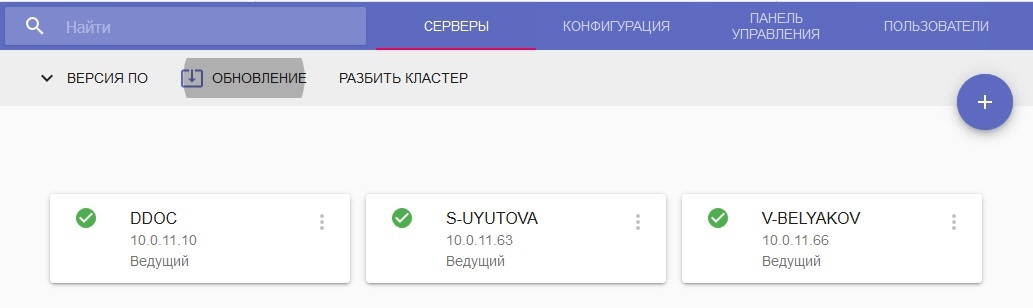 После завершения обновления всех Серверов кластера обновится статус в верхней части страницы.