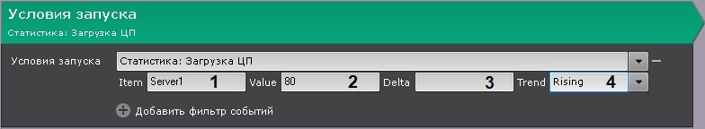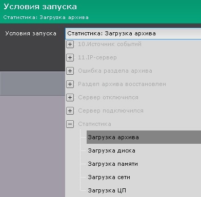1. В списке Условия запуска в группе Статистика выбрать необходимый параметр.