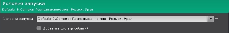 - В качестве условия запуска выбрать событие Распознавание лиц и необходимый список (см. Задание фильтров для событийных макрокоманд).