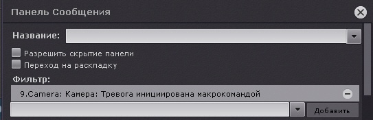 - Если в качестве реакции было выбрано инициирование тревоги, то для панели сообщений можно настроить фильтр по событию Тревоги инициирована макрокомандой (см. Настройка панели сообщений).