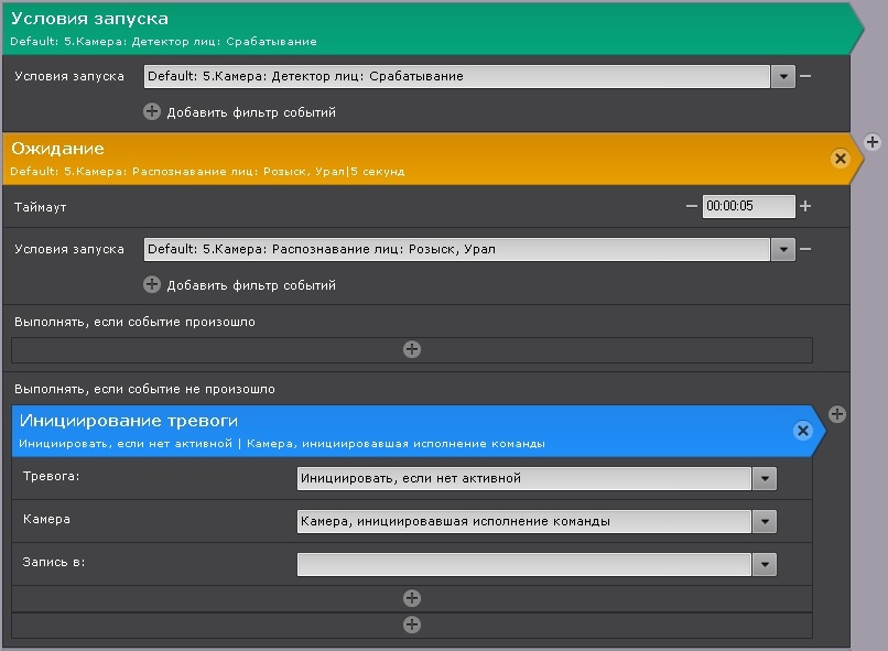 - Настроить действие или последовательность действий, которые должны быть выполнены при распознавании лица из заданного списка (см. Особенности настройки и выполнения действий).