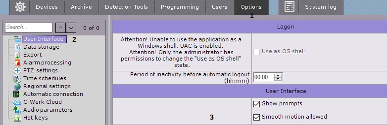 Smooth motion is needed to smoothly change the position of viewing tiles, as well as for smooth switching between tabs. Animation for viewing tiles is enabled by default. To disable this option, perform the following: